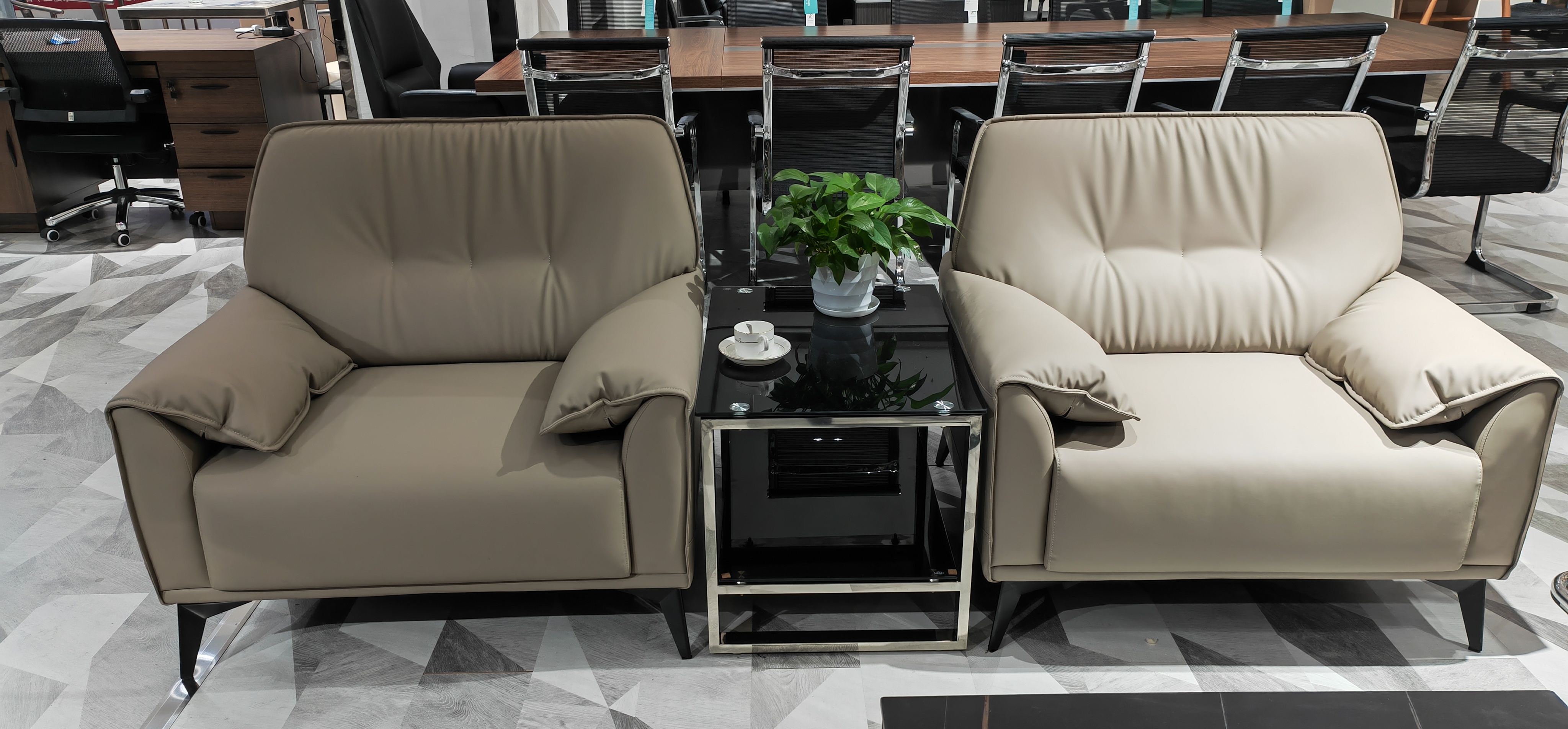 1、覆 面:采用優(yōu)質環(huán)保皮覆面。2、海綿:環(huán)保型高回彈一次成型PU泡棉,座密度≥35kg/m3,背密度≥25kg/m3、用無苯膠粘劑粘接經(jīng)防潮、防腐、防蟲處理 4、內部:采用硬雜實木框架,木制構件全部經(jīng)過烘干處理,木構件四面刨光,木材含水率8-12%,無腐朽和蟲蛀,填充物清潔、衛(wèi)生、無異味,不使用廢舊和再生材料,高強度S型彈簧和高彈力尼龍編織帶穿插編織打底,與泡棉間隔墊麻布(座雙層,背單層);