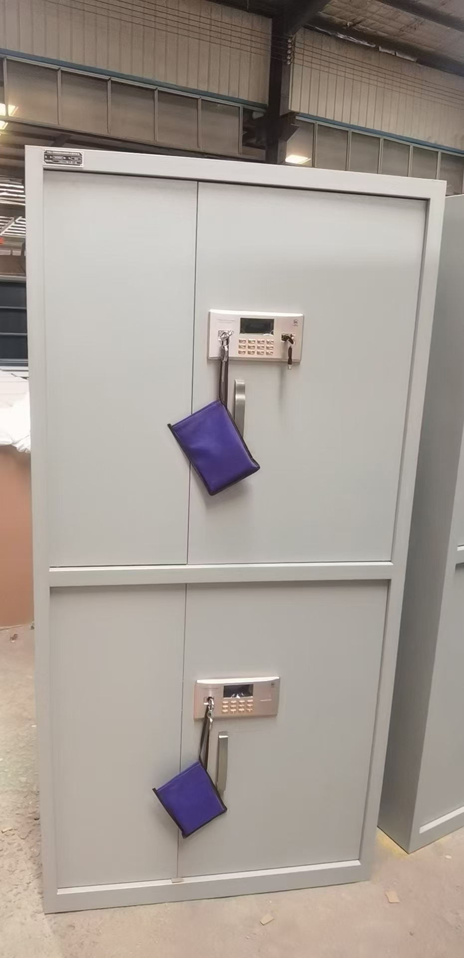 該產(chǎn)品全部采用優(yōu)質(zhì)冷軋鋼板,表面靜電噴塑處理,采用八工位前處理,大型靜電噴涂流水線,采用優(yōu)質(zhì)密碼鎖,綠色環(huán)保無毒無味防蟲防潮。